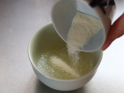 ゼラチンが溶けなかったら、追加で温めるようにしてください。