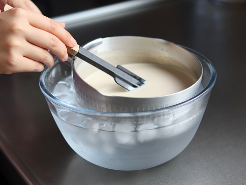 ※氷水で冷やしすぎると固まって餅状になり、うまく注げなくなります。