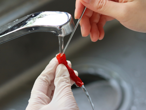 手を洗っても辛味成分が残るため、その手が目や肌に触れると危険です。