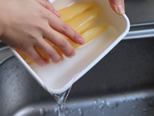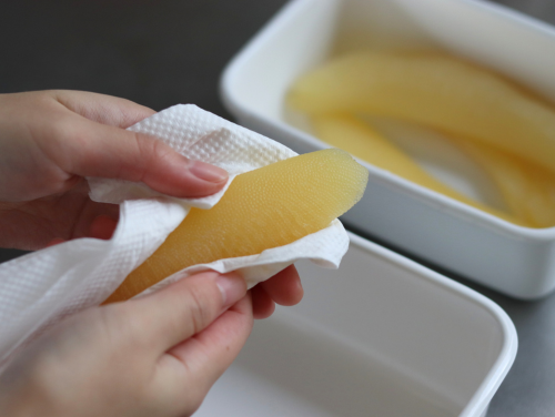 冷蔵庫に6時間~丸一日置いて、味見をしながら塩を抜く。