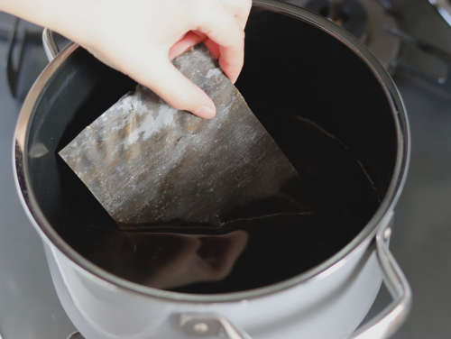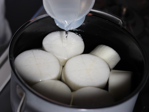 ○大根を煮る鍋に昆布と水を入れておく。