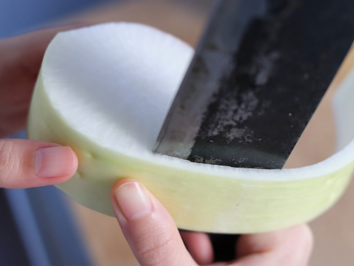 思い切って維管束の内側までごっそり剥くと、柔らかくておいしいふろふき大根になります。