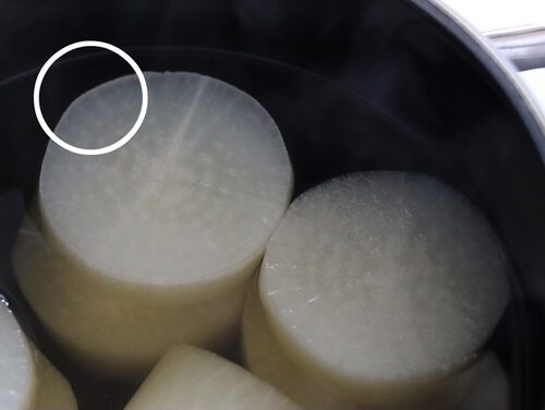 ※グラグラ煮立たせると大根がスカスカになるので、よく気をつけてください。