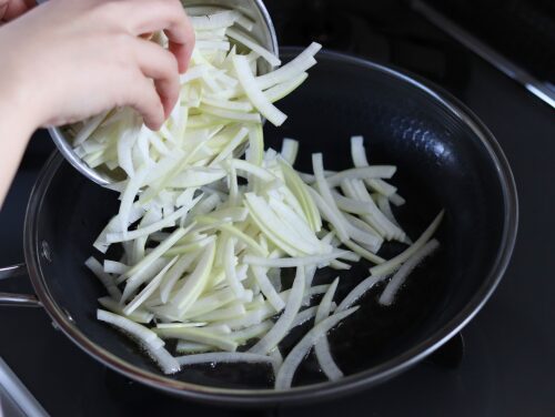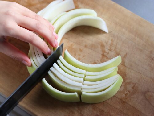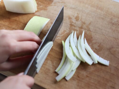 繊維を断つように、2mmほどの薄切りにする。